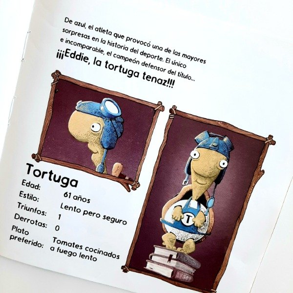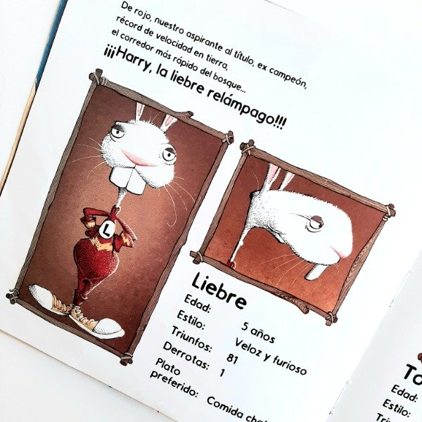 Una disparatada versión del clásico relato de la liebre y la tortuga, pero con un sorprendente desarrollo. Alocados personajes y brillantes ilustraciones, que atraparán por igual a niños y adultos.