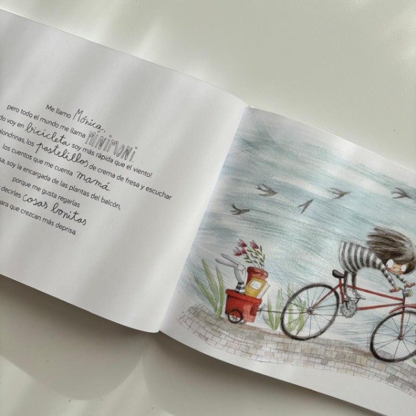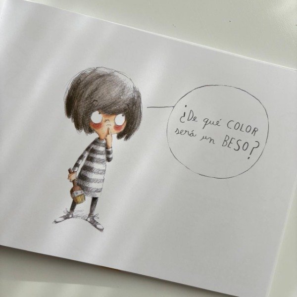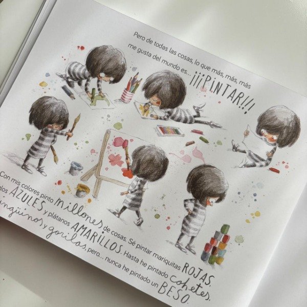 A Mónica le encanta pintar mil cosas de colores: mariquitas rojas, cielos azules, plátanos amarillos... pero nunca ha pintado un beso.