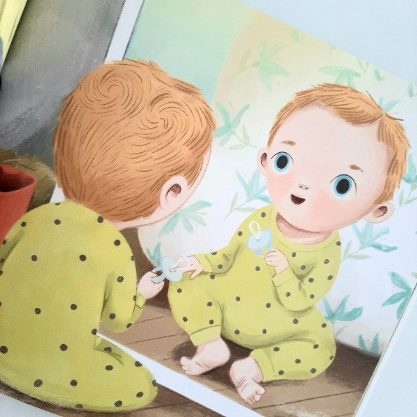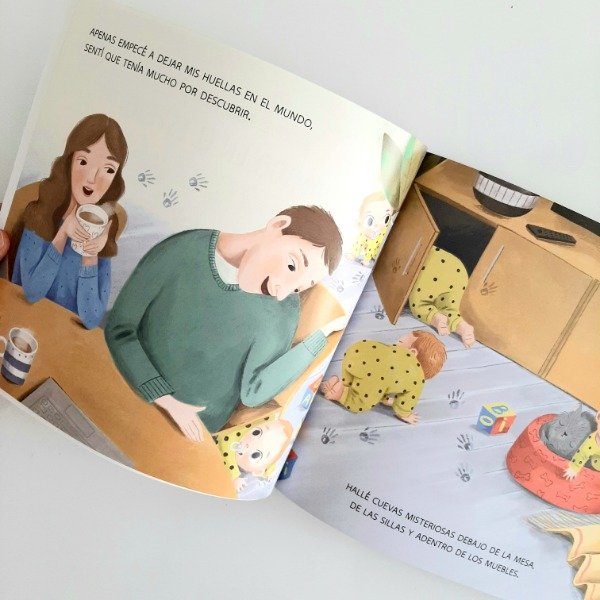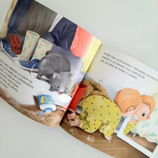 Damián empezó a gatear por toda la casa y descubrió un espejo en la puerta de un armario, y allí, frente a él, a un bebé que lo miraba sonriente. Era un nene chiquito como él, ¿querría ser su amigo?