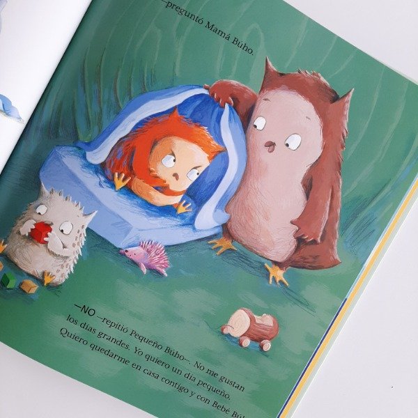 Hoy es un GRAN día para Pequeño Búho. Va a ir al cole por primera vez. Pero Pequeño Búho prefiere los días en su casa, con su mamá y Bebé Búho.