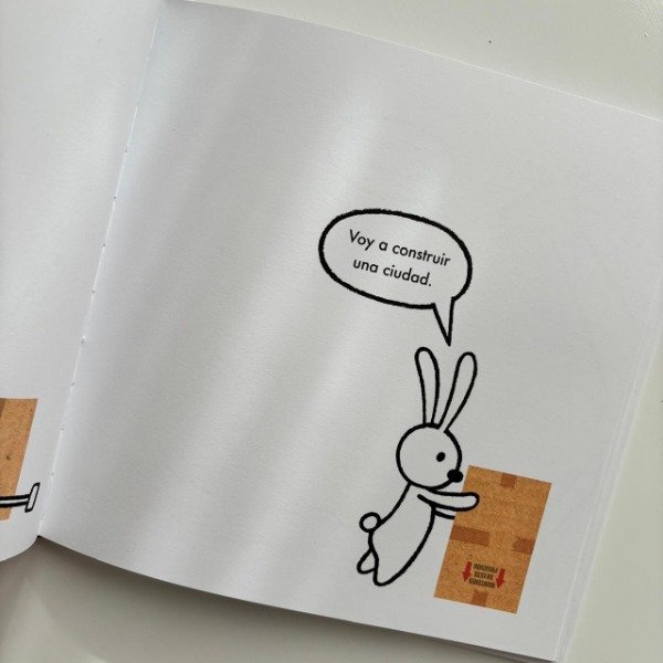 El pequeño conejo quiere construir una ciudad con cajas de cartón y cree que no necesita ayuda de nadie: ni de la jirafa, ni de las hormigas, ni siquiera del camaleón. Pero siempre es mejor trabajar en equipo.