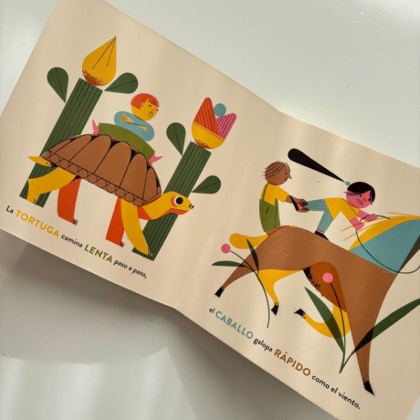 Un acartonado ideal para jugar a los contrarios en el que los animales acompañan a los más pequeños en sus tareas cotidianas.