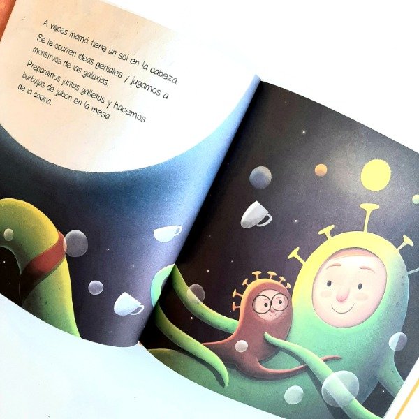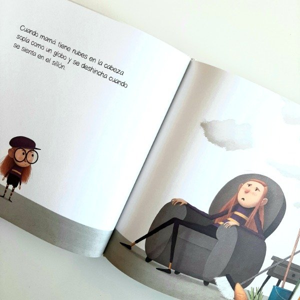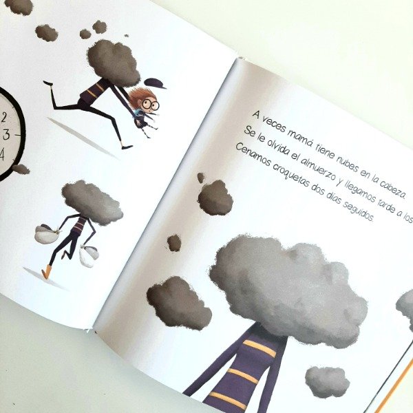 A veces mamá tiene truenos en la cabeza: habla muy alto y con los dientes juntitos. A veces tiene nubes en la cabeza: se le olvida el almuerzo y llegamos tarde a los cumples. Otras veces tiene un arcoíris en la cabeza: canta en el coche y me da muchos besos. ¿Será posible que yo también tenga truenos, nubes y arcoíris en la cabeza?