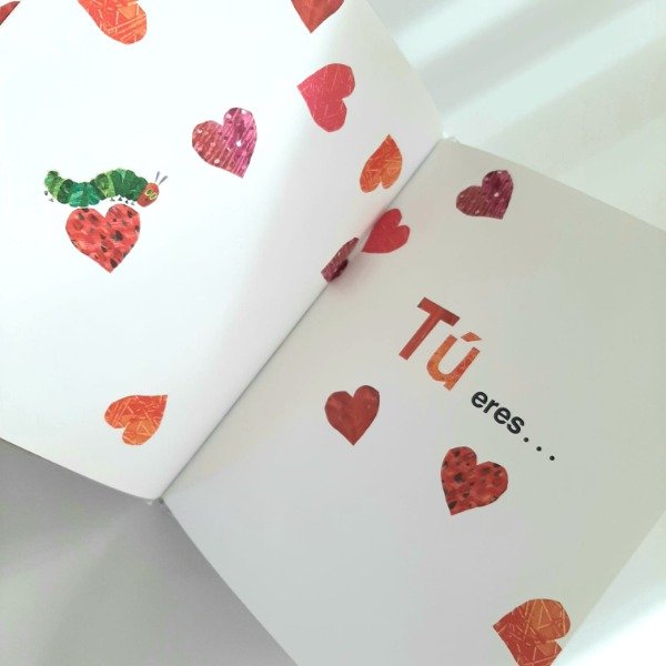 La pequeña oruga es, además de glotona, muy cariñosa. Por ello, en este libro abre su corazón, habla del amor y lo comparte con todos sus lectores.