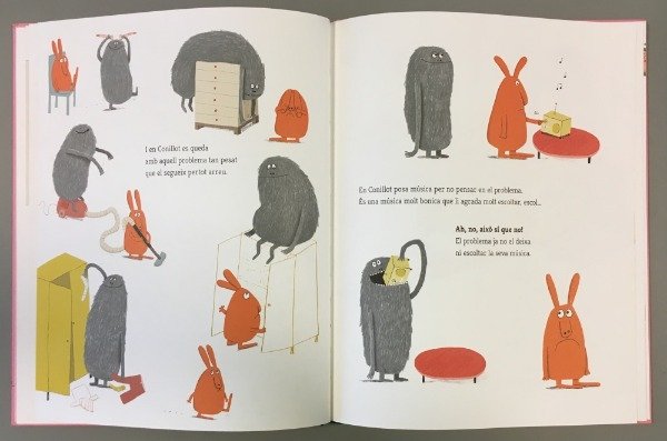 Conejo tiene un problema muy grande que le persigue por todas partes. Para quitárselo de la cabeza decide llamar a Ardilla, pero debe estar tan ocupada que no le coge el teléfono. Después se acuerda de su madre, pero no tiene tiempo para escucharlo porque tiene muchas cosas que hacer. El problema no le deja disfrutar de la música ni de la televisión. El problema le ha quitado el hambre. No consigue apartar su enorme malestar, lo ha invadido por completo. De pronto tiene una idea genial para echarlo de su casa, y está tan entusiasmado trabajando en su gran idea que no oye el timbre de la puerta. Finalmente, cuando se da cuenta que están llamando, abre la puerta y se encuentra a todos sus amigos, y también a su mamá con un gran pastel, que han venido a darle una fantástica sorpresa. ¡Hoy es su cumpleaños! Pero estaba tan sumergido en su preocupación que no se había acordado. En un instante, su casa se convierte en una sala de fiestas, y mientras disfruta plenamente de ella ¿Crees que seguirá ahí ese malestar que no podía quitarse de encima?