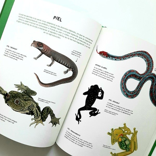 Las atractivas y hermosas ilustraciones a cargo de Loreto Salinas nos ayudarán a sumergirnos en su mundo, invitándonos a conocer y comprender aspectos básicos, y algunos más complejos, de los reptiles y anfibios de América.