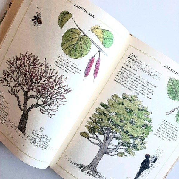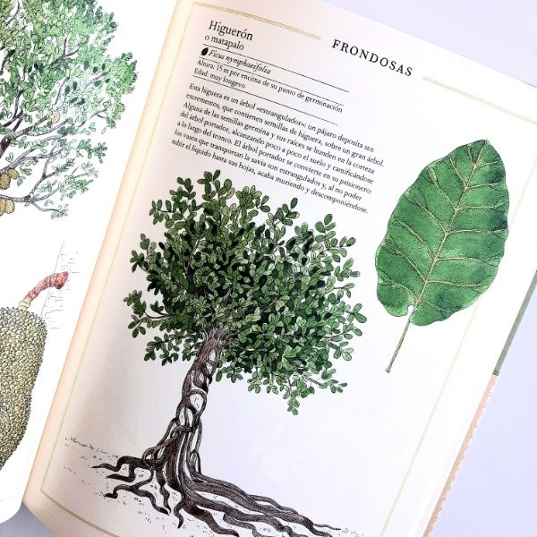 Frondosas, coníferas, palmeras. Árboles de todo el mundo en un compendio interdisciplinar que abarca aspectos científicos, ecológicos y simbólicos, con ilustraciones de estilo naturalista