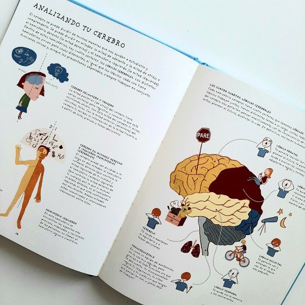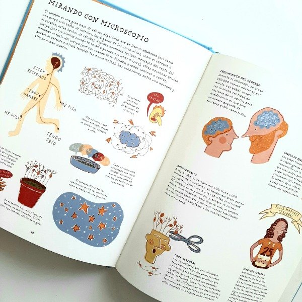 Las ilustraciones de Sole Sebastián hacen que aprender de este libro informativo sea entretenido, con experimentos y actividades que mantendrán tu cerebro sano y entrenado.