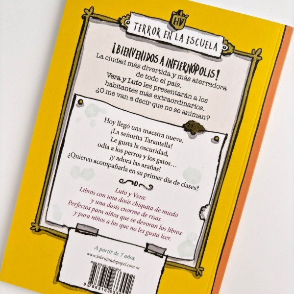 ¡BIENVENIDOS A INFIERNÓPOLIS! La ciudad más chistosa y más aterradora de todo el país. Vera y Luto les presentarán a los habitantes más extraordinarios. ¿O me van a decir que no se animan? Hoy llegó una maestra nueva. ¡La señorita Tarantella! Le gusta la oscuridad, odia a los perros y los gatos… ¡y adora las arañas! ¿Quieren acompañarla en su primer día de clases?