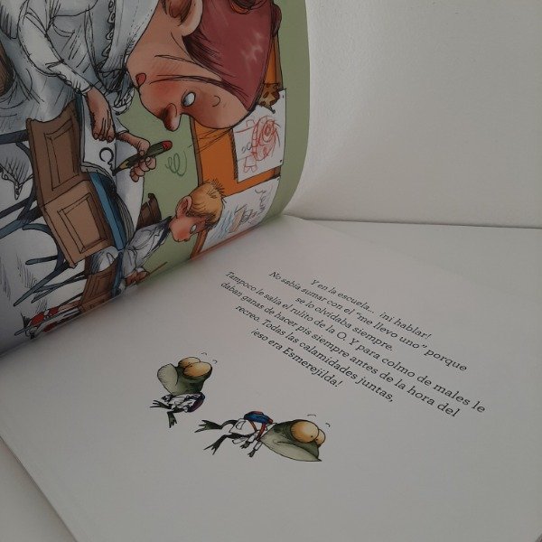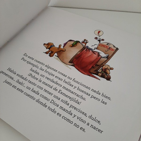 En este cuento algunas cosas no funcionan nada bien. Por ejemplo, las brujas eran bellas y buenas pero las hadas, un verdadero mamarracho. ¡Pobre la mamá de Esmerejilda! Había soñado tanto con tener una niña preciosa, dulce, generosa... ¡bah!... un hada como Dios manda y vino a nacer justo en este cuento donde todo es como no es.